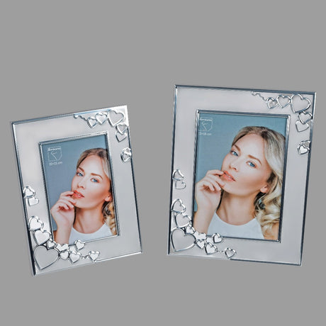 €21,95Grundpreis /Nicht verfügbarFotorahmen Weiß-Silber mit Herzen – 10x15cm und 13x18cm aus Aluminium