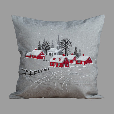 €12,95Grundpreis /Nicht verfügbarKissenhülle Winter „Dorf mit Kirche“ – 40x40 cm, Stickerei | Deko Tisch