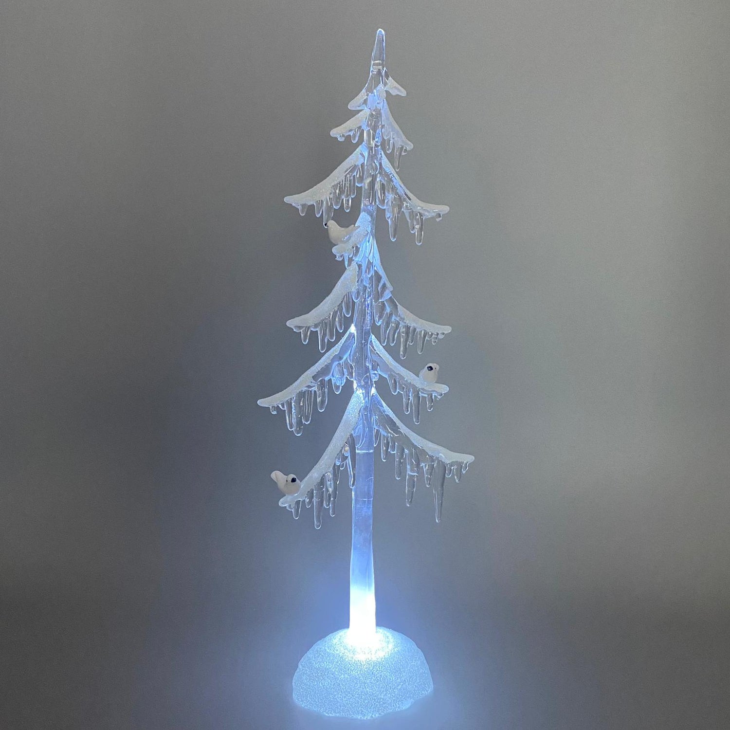 Deko Baum mit Vogel und Schnee-Dekor Acryl mit Licht | Winterdeko - 35cm / Acryl ist auf Lager und wird versandt, sobald es wieder verfügbar ist