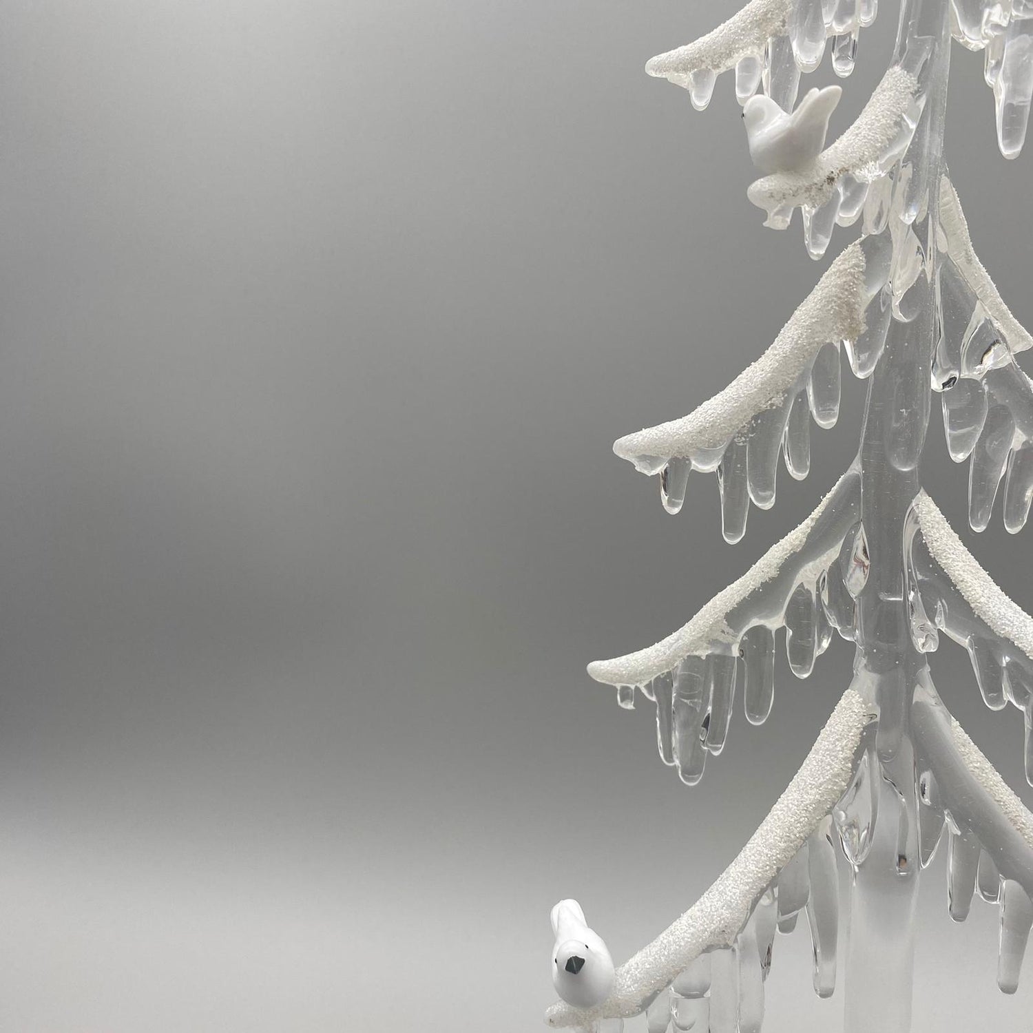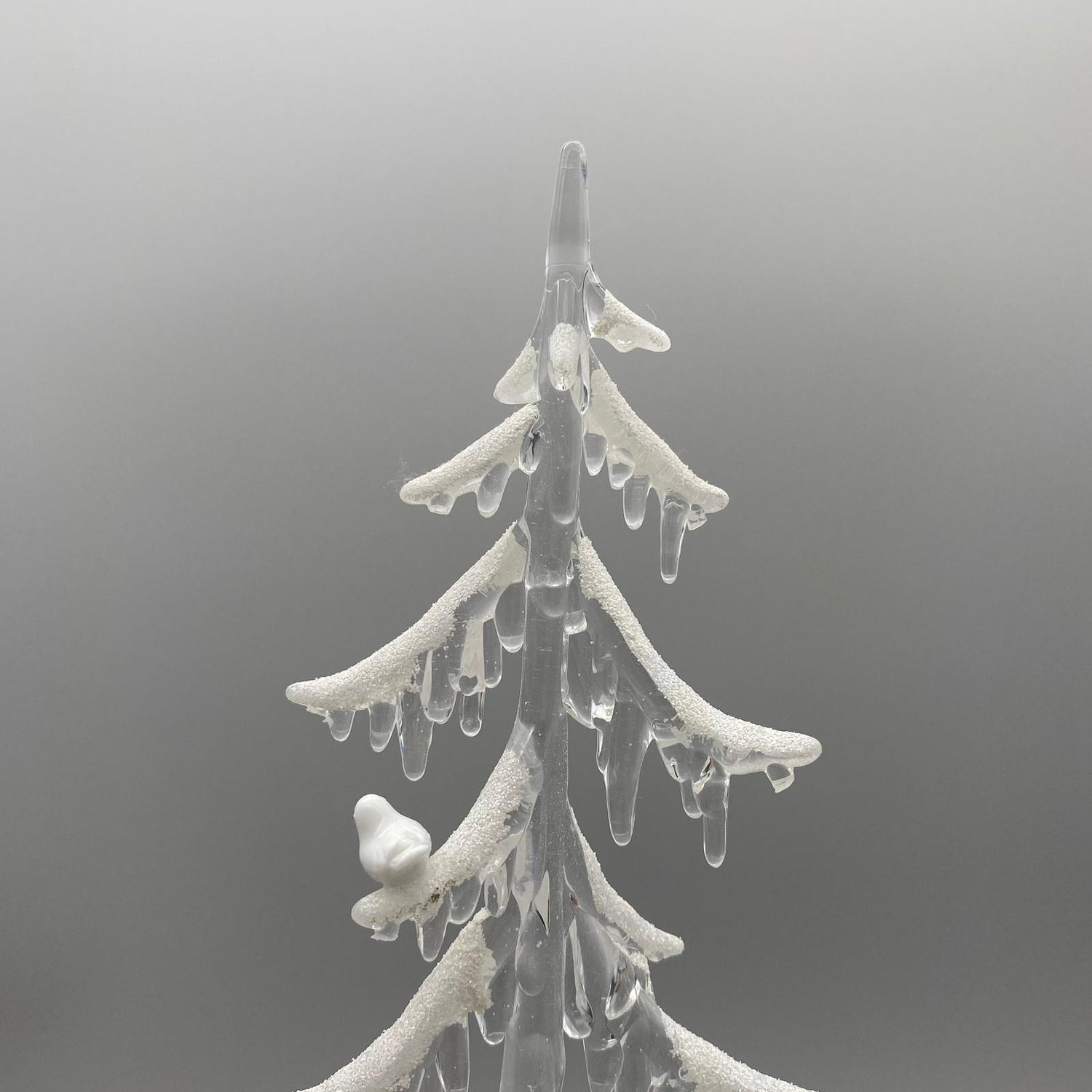 - Schnee- und Vogel-Dekor: Feine Schneekristalle und ein kleiner Vogel verleihen dem Baum eine märchenhafte Winteratmosphäre.