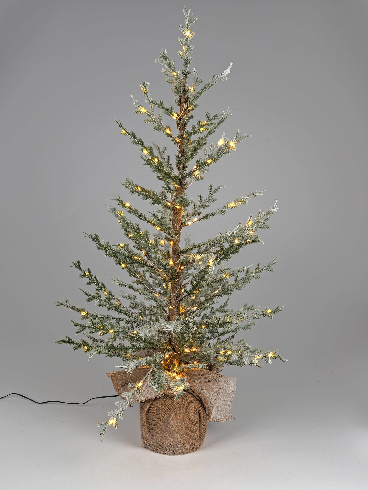 • Design: Hochwertige künstliche Tanne im Jutesack, liebevoll mit Schneedekor verziert