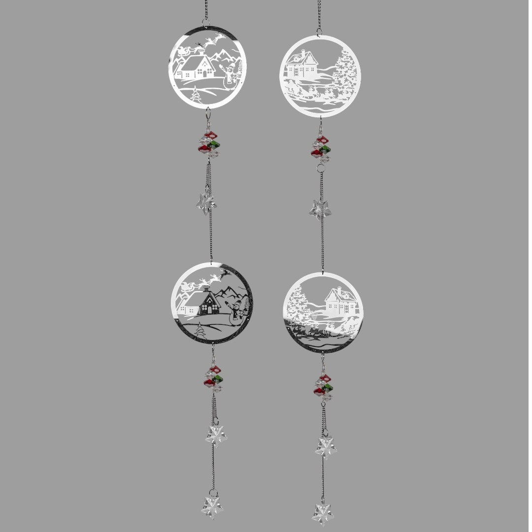 • Design: Edle Hänger in Kreisform mit filigraner Winterlandschaft – Bäume, Häuser, Hirsch & Santa